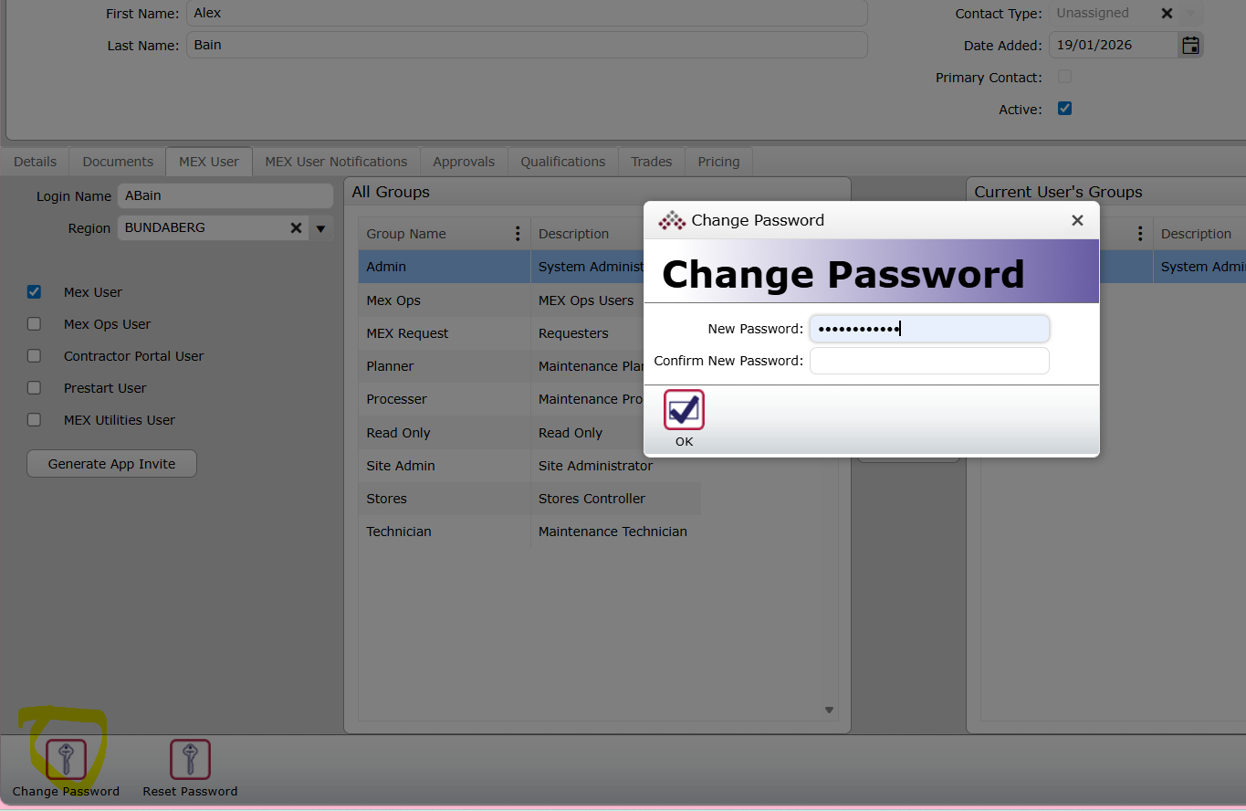 When you are first given a new user for MEX, it’s a good idea to change the default password you have been given.