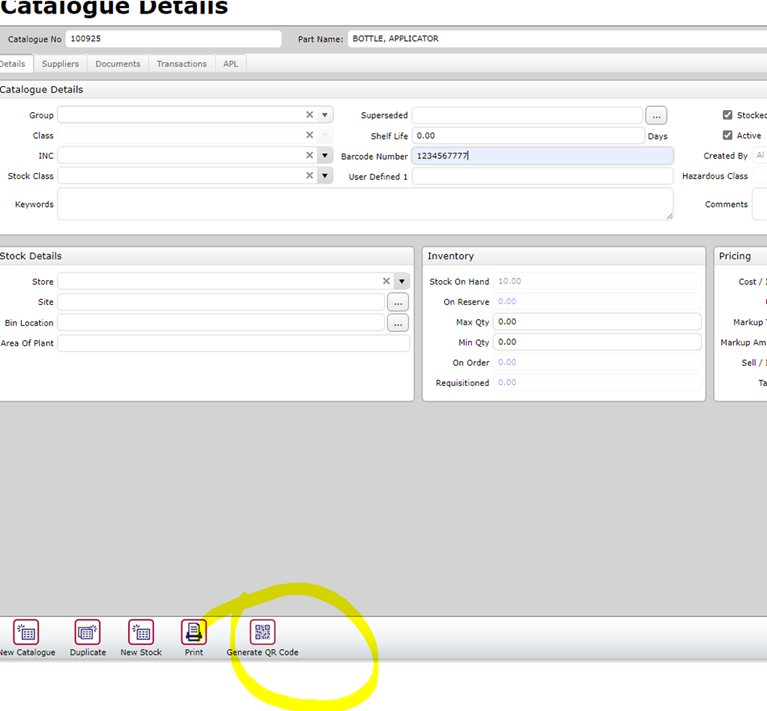 Catalogue Barcode Assigned and QR Code Generated from Details tab