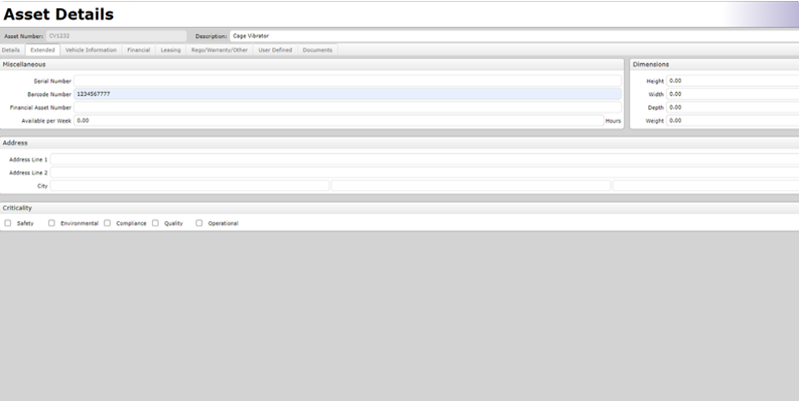 Asset Barcode Assigned in Extended Tab