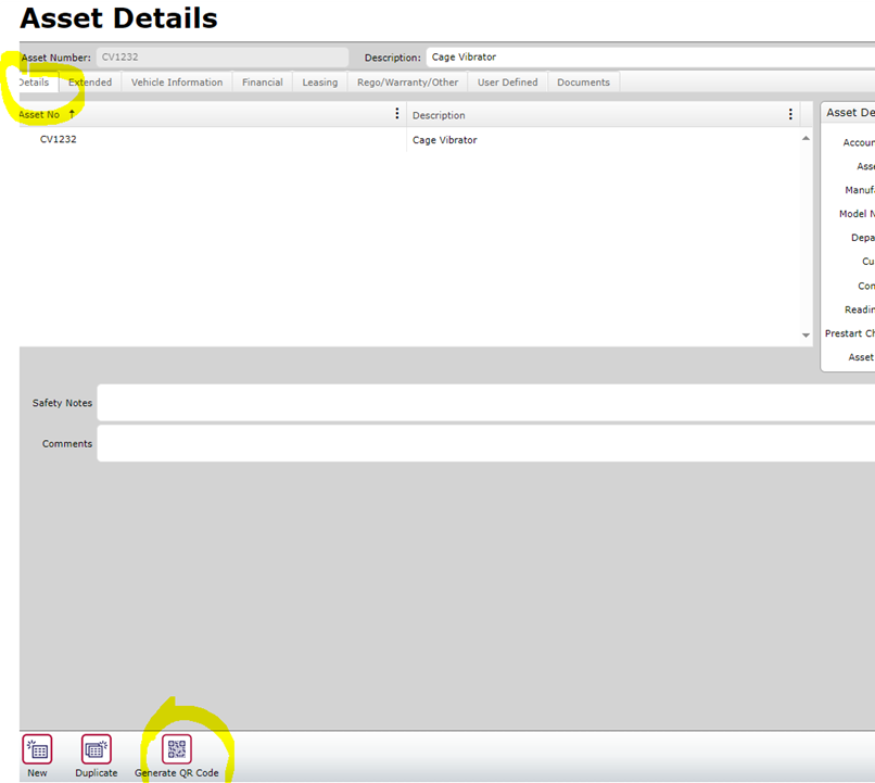 Asset QR Code Assigned in Details Tab
