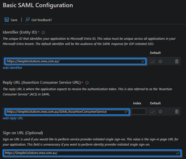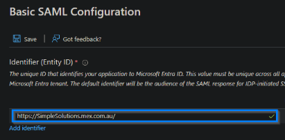 Previously on the 'Basic SAML Configuration' step above the 'Identifier (Entity ID)' was set: