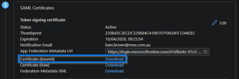 Email 'cloud.admin@mex.com.au', attach the certificate file e.g. 'MEX SSO.txt' and on the email note your MEX hosted website address e.g. 'https://SimpleSolutions.mex.com.au/'.