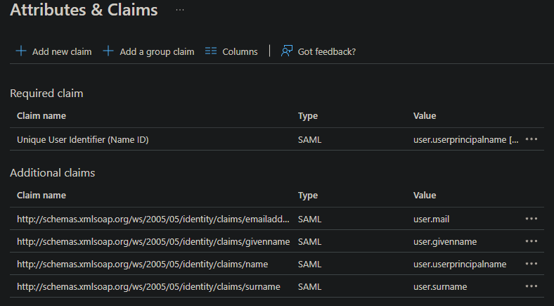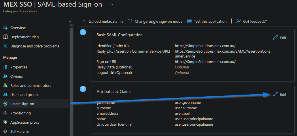 In the case that the MEX username does not match, this is the 'Unique User Identifier (Name ID)'. click on this claim.